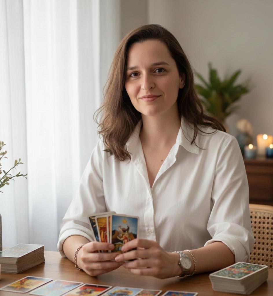 Com sensibilidade e intuição, interpreto as cartas para oferecer insights valiosos, ajudando meus clientes a enfrentarem desafios, tomarem decisões e descobrirem novos caminhos.
